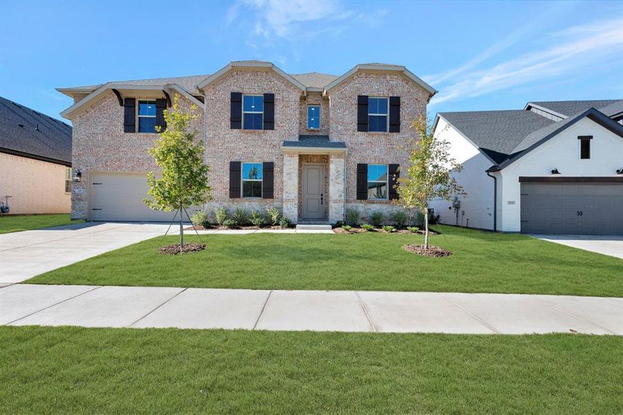 This stunning 2-story Stirling home design features 5 spacious bedrooms, 4.5 baths, 3-Car Garage, an upstairs loft and media room, and convenient home office. A lovely kitchen with island overlooks the dining area and great room with access to the 12'x27' covered patio. An elegant primary bedroom includes a relaxing private bath with separate vanities and large walk-in closet. Located in master-planned community of Elevon, the neighborhood will offer amazing amenities including a resort style pool, community garden, playground, and walking trails. HOA fee includes high speed internet!