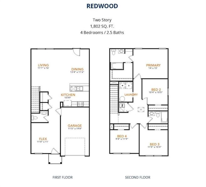 MLS# 21012833 - Built by NHC - Jan 2026 completion! ~ The redwood plan delivers spacious comfort and smart design, ideal for modern living. This 2-story home offers 4 bedrooms, 2.5 bathrooms, a 1-car garage, and 1,802 square feet of thoughtfully crafted living space. As you step inside, you’ll pass a versatile flex room, perfect for a home office or playroom, and a conveniently located half bathroom. The hallway opens to a bright and airy living area where the kitchen, complete with an island, overlooks the dining area and family room, creating the perfect backdrop for entertaining. The stairs, located in the family room, lead to the upper level. Here, you’ll find the private primary suite, complete with a bathroom and walk-in closet. Three additional bedrooms, a full bathroom, and the conveniently located laundry room complete this level, ensuring functionality for your daily routines!