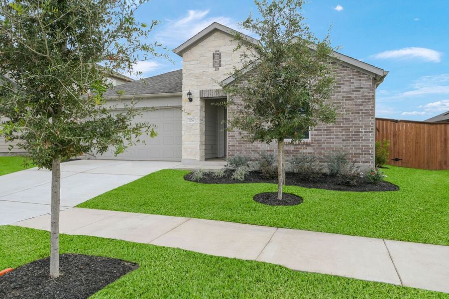 Welcome to the Finch floor plan at 204 Crumpton Way in Emory Crossing. This single-story home greets you with a charming porch and a bright foyer leading to two secondary bedrooms, a full bath, and easy access to the two-car garage. A nearby laundry room adds everyday convenience, while the heart of the home shines with an open-concept layout. The kitchen features a center island that flows effortlessly into the dining area, great room, and covered patio—perfect for hosting or relaxing. Tucked away in the back, the serene primary suite offers a spacious walk-in closet and a light-filled bathroom retreat. Set in the vibrant, master-planned Emory Crossing community in Hutto, you’ll enjoy thoughtful upgrades like an upgraded front door and whole-house blinds, plus access to trails, a pool, splash pad, playground, and more. Additional Highlights include: upgraded front door and whole house blinds. MLS#7303580
