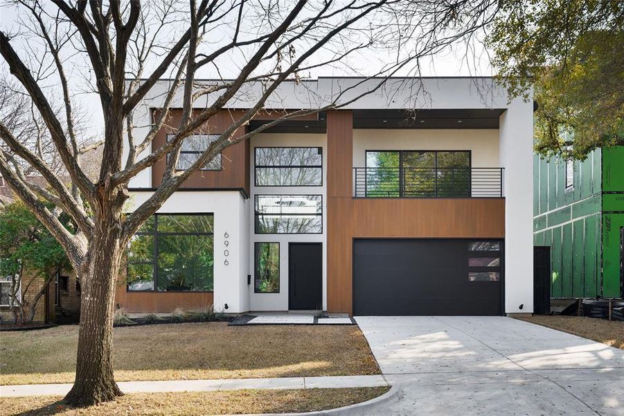 The gourmet kitchen is a showpiece, featuring hand-built cabinetry, a huge quartz island, WOLF® dual fuel range, 48-inch built-in Café® refrigerator, dry bar with LED-lit floating shelves and wine cooler, plus a walk-in pantry with generous storage and garage pass-through. Downstairs, the luxurious primary suite stuns with a soaring vaulted ceiling, sliding glass doors leading to backyard, and spa-like bathroom complete with floating vanity, a vessel tub, oversized rainfall shower, and a custom walk-in closet. Also on the main level: a versatile guest suite or private office with ensuite bath and a large laundry room. Upstairs, a game room with wet bar opens to a spacious covered veranda, while three additional bedrooms each feature ensuite baths and walk-in closets. Built with performance and peace of mind in mind, this home includes a Control4® Smart Home system, CAT-6E pre-wiring, foam insulation, dual tankless water heaters, piered-slab foundation, and a Maverick® 1-2-10 Builder’s Warranty. A masterful blend of design, technology, and location—6906 Clayton Ave delivers refined living in one of Dallas’ most desirable neighborhoods.