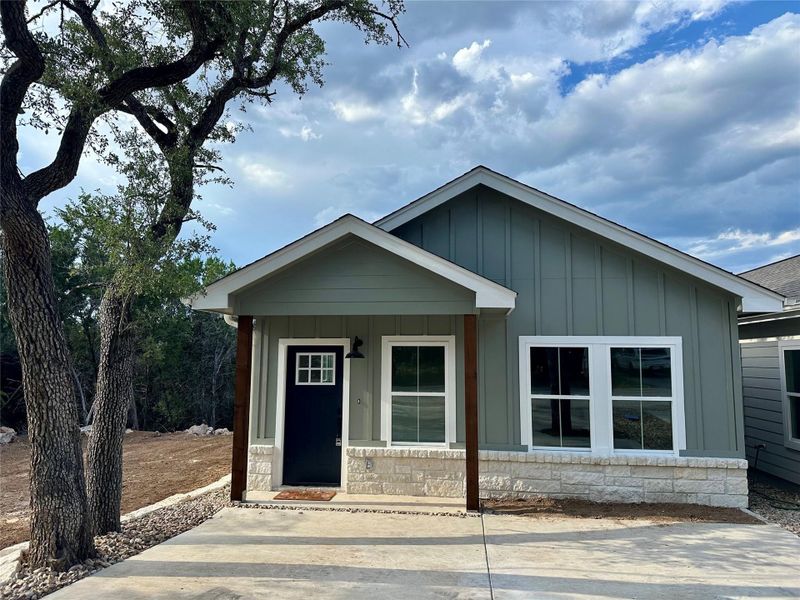 New construction 2 bedroom/2 bath adorable cottage home! This cutie is perfect for a starter home, second residence, buyers wanting a low maintenance lifestyle, or investment property. Each bedroom has a glass door leading out to the wooden deck in the back overlooking the trees. Beautiful interior finishes such as wood look tile flooring, granite countertops, & designer tile in the kitchen & bathrooms. Spacious laundry room with built-in pantry shelves. Small neighborhood open greenspace is on the left side of the home. There is also another listing next door at 324 Shady Bluff Dr which has the same floor plan but different interior & exterior finishes. Ready for immediate move in!