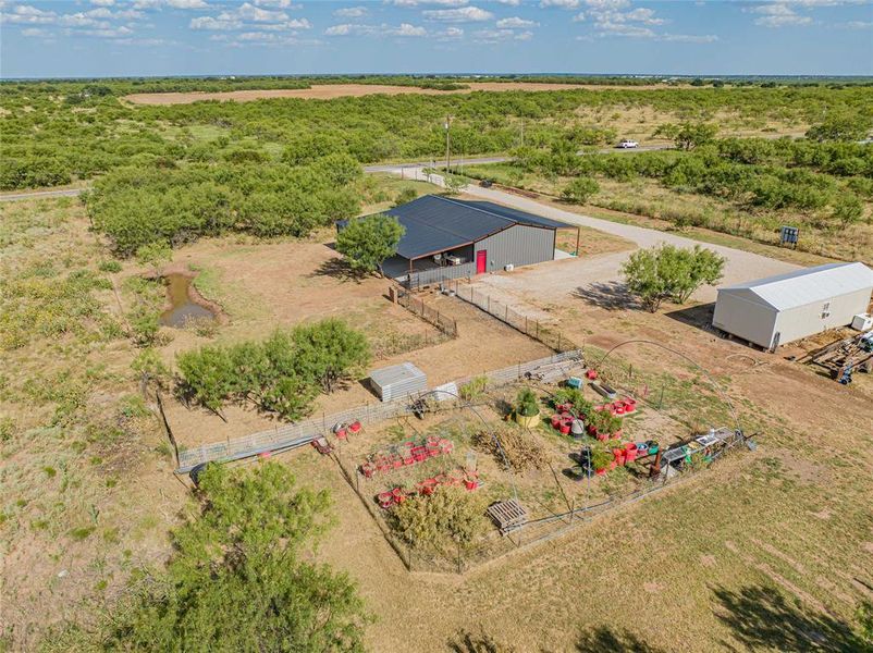 Location is key with this small acreage, in the middle of nowhere yet close to everything! New 3 bedroom 2 bath 1500 sq ft barndominium on 1.83 acres in a desirable area right outside of city limits. Enjoy a large open floor plan, with grand 14' vaulted ceilings, & mini splits making it a more than pleasant place to escape the Texas heat. The roomy kitchen has an informal dining area & walk in utility room with space for pantry inserts or cabinetry. Primary bedroom has full ensuite bathroom with spacious closet. The outdoors truly radiates with an abundance of space featuring a 1500 sq ft back covered patio that is perfect for cooking out & entertaining. This beauty is still a work in progress making it a blank canvas for your dream. Photos to be updated with progression. Currently has tiny home on property that will be moved which leaves space for mother-in-law quarters or RV hookup. Near 2 quick accesses South or Northwest of property to FM 2231 & 2 minutes to Hwy 180 W. Don't miss this rare chance to own a one of a kind! Buyer or buyer's agent to verify all info.