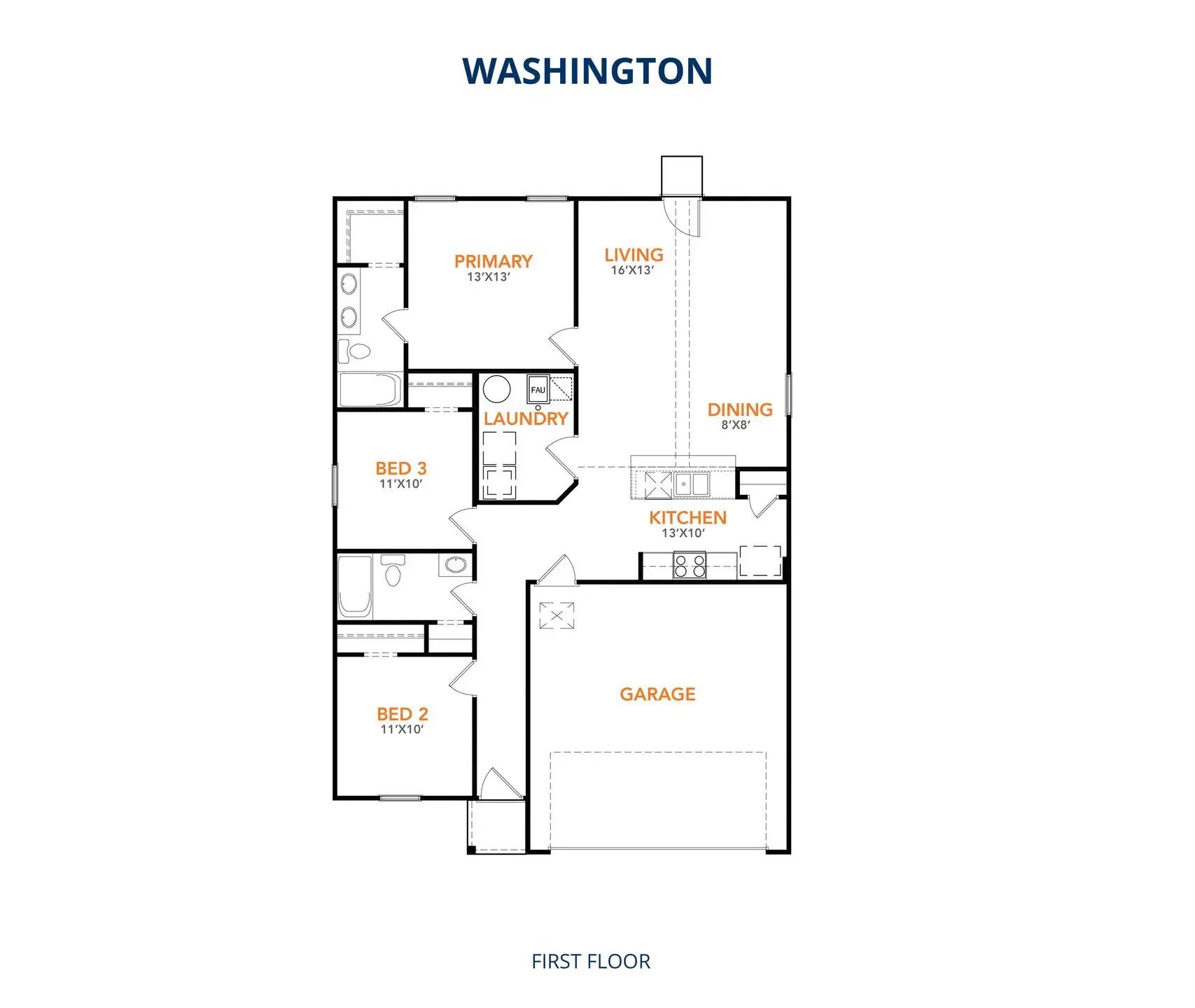 MLS# 21120795 - Built by NHC - Mar 2026 completion! ~ The Washington Plan from our Liberty Series is a thoughtfully designed single-story home featuring 3 bedrooms, 2 bathrooms, a 2-car garage, and 1,209 square feet of functional living space. As you step inside, you’ll find two secondary bedrooms and a full bathroom conveniently located at the front of the home. Continue into the bright and open living area, where the kitchen with a central island seamlessly overlooks the dining area and family room, creating a perfect space for everyday living and entertaining. The laundry room is thoughtfully situated off the kitchen for easy access. The primary bedroom, located at the back of the home for added privacy, features a private bathroom and a walk-in closet, providing a comfortable retreat.