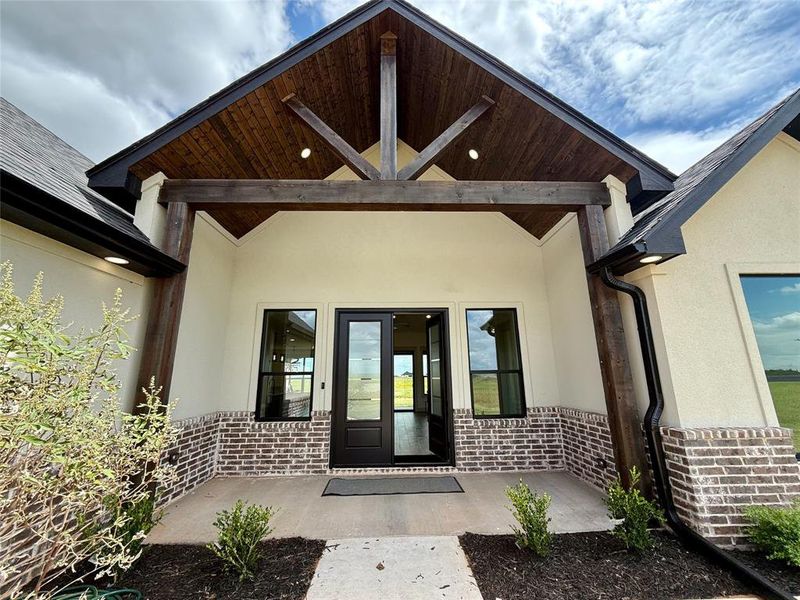 New home on 2.11 acres! Features include brick, EIFS, and cedar materials with an open floor plan, vaulted cedar-beam ceilings, large windows, and stunning views. It boasts a spacious central island, black stainless steel KitchenAid appliances (propane range, electric oven, fridge, microwave, dishwasher), a farmhouse sink, painted inset flat-front cabinets, and a large pantry. The master bedroom has a vaulted ceiling with a cedar beam, and the master bath includes dual sinks, a glass shower, and a freestanding tub surrounded by tile walls and a built-in television. Laundry connections are available with a pass-through window from the master bedroom closet. There's a 4-bedroom 3-bathroom Jack and Jill setup, HVAC, spray foam insulation, and a tankless propane water heater with a recirculation pump. Includes 3-car (2 + 1) garage. Holliday ISD or Archer City ISD. A featured home in the North Texas Home Builders 2025 Parade of Homes!