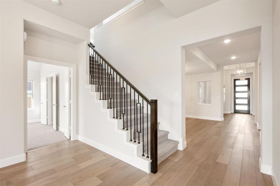 NEW! NEVER LIVED IN! Ready to Close! This Bloomfield Homes Carolina IV features 4 bedrooms, 3 bathrooms, and a spacious 3-car garage with cedar doors, on an oversized corner lot in Mansfield. Step inside to find luxurious finishes throughout, including hardwood flooring, vaulted ceilings, and patterned carpet in bedrooms. A light-filled rotunda entry opens to a private Study enclosed by glass French doors, and a Formal Dining Room perfect for hosting. The Family Room showcases a fireplace and connects seamlessly to the Deluxe Kitchen, which boasts Professional Series Appliances—double ovens, a 5-burner gas cooktop, wood vent hood, pot & pan drawers, upgraded kitchen backsplash, painted cabinets, and under-cabinet lighting. Satin nickel hardware, lighting, and plumbing fixtures provide a clean, cohesive look across the home. Additional cabinet hardware and a tech center. The Primary Suite offers a private retreat with an enlarged shower, dual sinks, and a walk-in closet. Secondary bedrooms are thoughtfully positioned, and an upstairs suite includes a Game Room, Media Room, full bath, and an additional bedroom—ideal for guests or multi-gen living. Outdoor features include rain gutters, blinds, an extended covered patio with a gas stub for grilling and a fully landscaped yard. This home also includes a tankless water heater, premium tile in all baths, multiple lighting upgrades including LED disc lights, under-cabinet lights, and uplighting for added ambiance. This home is packed with thoughtful details—schedule your private tour today and make it yours before it’s gone!