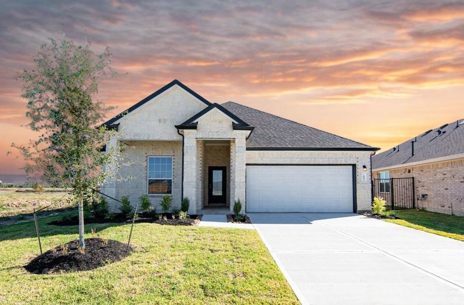 Welcome home to River Ranch in Dayton, TX! This amenity-rich community offers a dog park, Crystal Lagoon with sandy beaches, pickleball courts, a playground with covered pavilion, and scenic walking trails—perfectly balancing relaxation and recreation. The Highlands floor plan is a charming one-story home with 4 bedrooms, 3 bathrooms, and a 2-car garage, designed for comfort and functionality. Inside, vinyl plank flooring flows throughout, creating a stylish and durable foundation for everyday living. The gourmet kitchen features 42-inch cabinets, quartz countertops, and a large island overlooking the family and dining rooms. Retreat to the secluded Owner’s Suite, complete with a beautiful bay window, tray ceiling for added flair, and a spacious walk-in closet. Step outside to enjoy the extended covered patio, perfect for outdoor living. This beautiful new home blends modern finishes, functional design, and vibrant community living—don’t miss your opportunity to call River Ranch home!