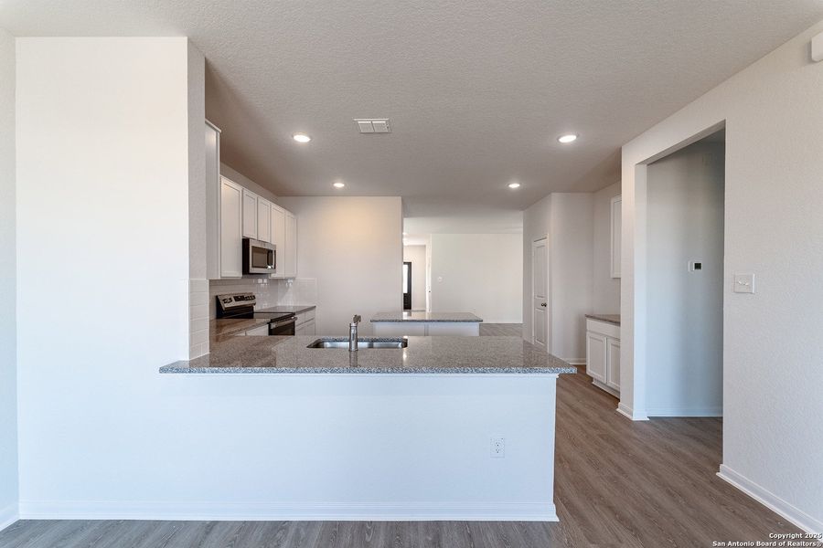 The delightful Ash floor plan is a sprawling, two-story design that is full of character. The exterior of the home is just as beautiful as the interior since the home will have a two-tone paint selection, and an exclusive landscaping package including shrubs, a caliper oak tree, and a yard that is fully sodded. Entering from your front porch, you are greeted by an elegant foyer with vinyl plank flooring that your two-car garage lies beside. Across the foyer is your convenient powder bathroom featuring a white pedestal sink and decorative mirror that flows right into your open-concept family room. The massive family room is perfect for entertaining guests and is boasting with ample amount of space. The smell of fresh cookies baking can be experienced from the family room, since the kitchen is opened up facing the living area. The expansive kitchen area is completed with granite countertops, beautiful flat-panel birch cabinets, designer light fixtures, and industry-leading appliances. You will love having the ability to install a kitchen island in the center of the kitchen, if you are needing more counter space. Speaking of more space, your oversized walk-in pantry will come in handy when you need to store all your food, spices, and dog treats. Integrating with your kitchen is your welcoming formal dining space with entry to your backyard in the corner of the room. Giving your backyard added value, you have the option of including a sizable covered patio! Adjacent to your formal dining room is the large Master Bedroom. Leading off the bedroom is your gorgeous master bathroom complete with cabinetry that matches your kitchen selections, cultured marble bath countertops, LED down lighting, and a super shower. Up the stairs, you will come across a large gameroom that is ideal for family game nights, as well as three additional bedrooms, and a secondary full bathroom. The Ash floor plan is sure to fit most any family lifestyle.