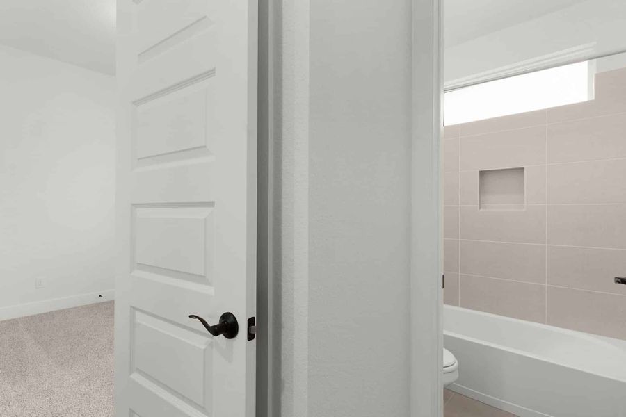 Bedrooms 2 and 3 share a Jack-and-Jill bathroom with dual sinks, making school mornings that much smoother. A mud bench off the garage keeps backpacks, diaper bags, and daily chaos in check.