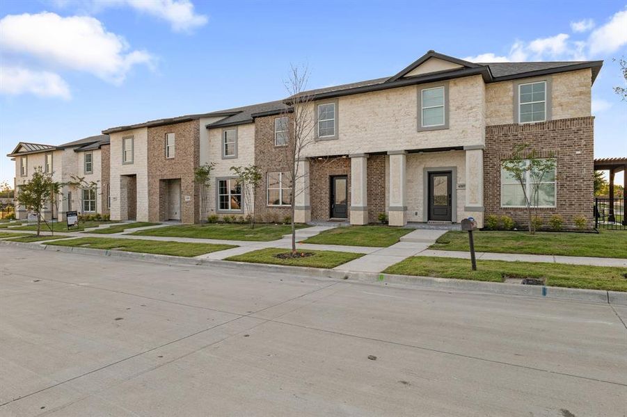 Available Now- MOVE-IN READY!! New Construction*LOCATION with 2 quick access to I-90! Newly constructed townhome offering 3 spacious bedrooms, 2.5 bathrooms, and modern finishes throughout. The open-concept first floor features a large living area seamlessly connected to the kitchen—perfect for both entertaining and everyday living. The kitchen showcases stunning quartz countertops, a quartz island, stainless steel appliances, and an inviting eat-in dining area. Downstairs also includes durable and stylish LVP flooring, a large laundry room, a spacious half bath, and an attached 2-car garage with sleek epoxy flooring. Tech-ready with CAT 6 wiring and enhanced with a striking 8' ornate front door, this home blends function with high-end style. Upstairs, the primary suite is a true retreat with a spa-like ensuite bathroom featuring dual vanities, a large walk-in shower, a standalone soaker tub, and a generous walk-in closet. Two additional bedrooms share a full bathroom with ample space. Merritt Villas Community offers a gated in dog park for your furry companion and will soon feature a play park for children. HOA maintains front yard, grounds, structure, insurance and management fees. Ideally located near the George Bush Turnpike, this home offers easy access to major highways, shopping, SACHSE Medical centers, dining, and a wide range of entertainment options. NO MUD, NO PID, Garland school of choice.