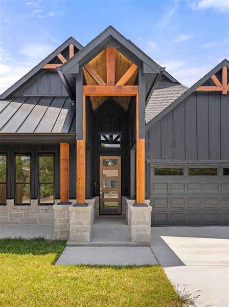 Step into this stunning new construction modern farmhouse, thoughtfully designed with warm, inviting tones and sophisticated gold hardware throughout. Offering 4 spacious bedrooms and 2 beautifully designed bathrooms, this home is perfect for comfortable family living. The open-concept layout features soaring vaulted and cathedral ceilings, elegant quartz countertops, and stylish lighting that adds a modern touch. In the heart of the home, the kitchen is a chef’s dream—with a large center island, designer lighting, and eye-catching gold finishes that bring a touch of luxury to everyday living. Relax in the cozy living room, complete with an electric fireplace and dramatic cathedral ceiling, or retreat to the serene primary suite featuring a generous walk-in closet. Ample storage and spacious closets are found throughout the home. Located just minutes from shopping and dining, this home blends upscale finishes with everyday convenience. Don’t miss your chance to own this warm and welcoming modern farmhouse!