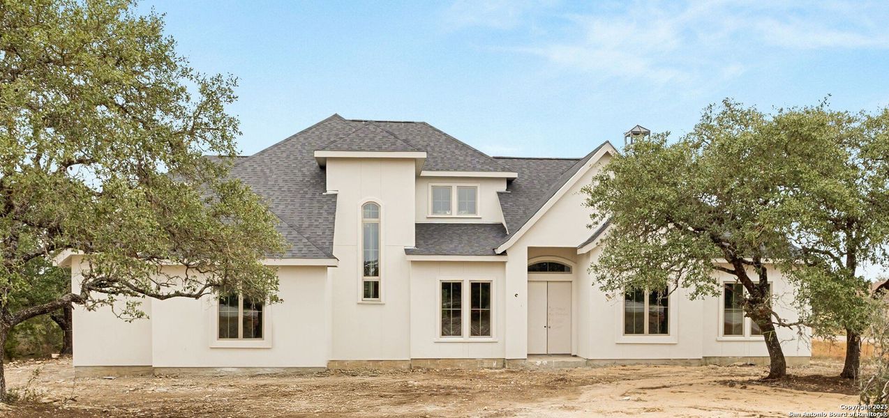 Currently Under Construction - 426 Eider Cove, Mystic Shores - The Mesquite Plan by JLP Builders. Step into refined Hill Country living with the Mesquite floor plan, meticulously designed by JLP Builders to blend modern elegance with practical comfort. Featuring 4 bedrooms and 3.5 bathrooms, this thoughtfully crafted home delivers both space and sophistication for families and entertainers alike. Gourmet Kitchen - Elevate your culinary experience with GE Cafe stainless steel appliances, custom wood cabinetry, and a striking oversized island. The kitchen is finished with Carrara Marmi quartz countertops, bringing a timeless white-and-gray elegance to the space, while providing the perfect blend of durability and style. Luxurious Bathrooms - Relax in spa-inspired comfort with high-end tile work, sleek Moen faucets, and premium fixtures. The primary suite features a walk-through shower and freestanding soaking tub, creating a retreat worthy of a luxury resort. Sophisticated Interior Details - From tray and coffered ceilings to designer paint selections and detailed trim work, every element reflects quality craftsmanship and an eye for style. Smart & Secure - This home comes with JLP's Smart Technology Package, including Z-Wave switches, a Wi-Fi-enabled double oven, programmable thermostats, and a pre-wired security system with electronic deadbolts-delivering both convenience and peace of mind. Outdoor Living - Enjoy year-round entertainment on the spacious covered back porch, complete with wood tone ceiling accents and a stone fireplace-perfect for cozy evenings or weekend gatherings. Nestled in the tranquil Mystic Shores community, 426 Eider Cove offers the perfect combination of style, comfort, and innovation.