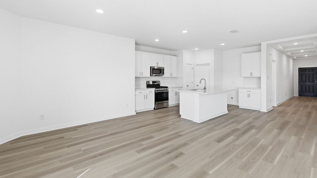 The open-concept kitchen, dining, and family room create a seamless flow, perfect for entertaining or casual everyday living. The owner’s suite is designed with relaxation in mind, featuring a spacious bedroom, dual vanities with a second sink, and a walk-in shower. A unique door from the laundry room to the owner’s bath makes daily routines easier and more efficient.
