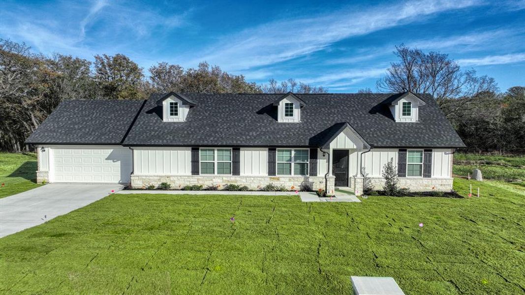 Brand-new John Hunter Home Builders’ Silver Series home on 2 peaceful acres in Poolville, Tx. This 4-bedroom, 2-bathroom farmhouse-style home offers quiet country living with thoughtful features and classic charm. This home is on a private water well with good water and includes a 1-2-10 builder warranty. 2 car garage and landscape, sod, and irrigation package included. Ask about available builder incentives! COMPLETION IS EARLY NOVEMBER.