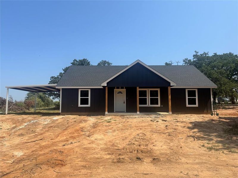 This is a new construction home in Springtown ISD. Come check out this 3-bed 2-bath open floorplan home on 1 acre. The kitchen has an island with granite countertops, custom painted cabinets, and stainless-steel appliances. Master bathroom has dual sinks, oversized walk-in closet, and corner walk in shower. Custom tile throughout house and carpet in bedrooms. Large backyard and NO HOA. Side access door to attached carport. Minutes from downtown Springtown.