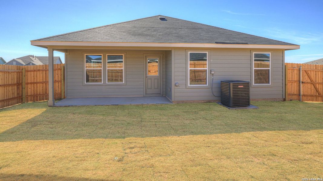 SEPTEMBER/OCTOBER ESTIMATED COMPLETION. The Caden is one of our one-story floorplans available at Paramount in Kyle, Texas. This 3 bedroom, 2 bathroom home includes a 2 car garage across 1,587 square feet of modern living space. Our homes in Paramount feature our modern farmhouse exteriors Step inside the home from the covered front porch and cross the long foyer to the heart of the home, the open concept living space. The kitchen, dining room and family room are designed to keep the conversations flowing and is sure to be the place where many memories are made. The kitchen features stainless steel appliances, including a gas range, quartz countertops, an island with undermount sink, and 36' upper cabinets. The pantry closet is conveniently located off the kitchen in a space that includes an extra closet and the utility room, providing amble storage. The secondary bedrooms and bathroom are at the front of the home. The hall bathroom includes a shower/tub combination and a marble countertop. Whether you use the bedrooms for an office, guest room, or kids room, there is plenty of privacy in the Caden. You will find the primary bedroom at the back of the home. This ensuite provides enough space to make your morning routine run seamlessly. The attached bathroom includes a walk-in shower, marble countertops with dual vanity, and a walk-in closet with ample shelving. The Caden includes vinyl flooring throughout the common areas of the home and carpet in the bedrooms. All our new homes at Paramount feature extra storage space in the garage, a covered back patio, full sod, and an irrigation system in the front and back yard. This home includes our America's Smart Home base package, which includes the Front Doorbell Deadbolt Lock, Home Hub, Thermostat, and Deako Smart Switches.