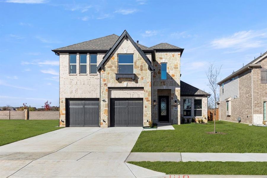 MLS# 21034225 - Built by First Texas Homes - Ready Now! ~ This stunning 4-bedroom, 3-bath home offers a study, spacious gourmet kitchen, and upstairs game area. The upgraded elevation features enhanced brick and mortar, an upgraded front door, and a multi-slide patio door opening to an extended covered patio ( 50 sq. ft.). Inside, enjoy a raised flat family room ceiling, enclosed flex room, raised fireplace with tile to the ceiling, and custom lighting in the family, primary, and game rooms. The kitchen boasts an upgraded Electrolux gas range, wood hood, cabinets to the ceiling, upgraded countertops, tile, and backsplash. Additional highlights include pendant lights, LVP flooring, upgraded carpet, frameless shower in the primary bath, extensive trim work, and a security system. This home is a must see!