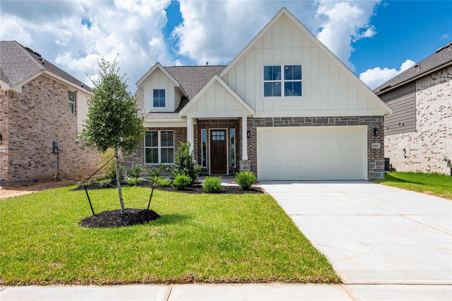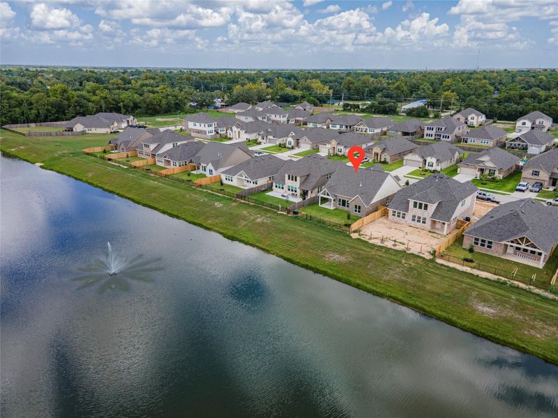 Fantastic 4 Bedroom Waterfront Beauty 1.5 Story. New Construction. Located in Desirable Centennial Oaks in Santa Fe. All Sides Brick. Beautiful Curb Appeal w/ Extended Front Porch & Over-Sized Covered Back Patio. Awesome Open Floor Plan. Tall Cathedral Ceilings. Gorgeous Chef's Island Stainless Kitchen. Side by Side Refrigerator Included. Huge Quartz Island w/Premium Appliances & Recessed Lighting. Undercabinet Lighting. Abundant Soft Close Cabinetry. Walk In Pantry. Large Breakfast Area. Gas Log Fireplace. Living Room Shelves & Built-In Cabinetry. Master Retreat w/Cathedral Ceilings, Dual Vanity Sinks, Large Walk-In Closet. Huge 4th Bedroom Upstairs. Could Be Used as Game Room, Bonus Room, Office. Super Energy Efficient. Radiant Barrier Shield. Tankless Water Heater. Oak Trees in Front & Back Yard. Wrought Iron Fencing w/Gate. Large Extended Covered Back Patio Opens Up to the Lake & Water Fountain! Amazing Community. Super Low Taxes! No MUD Tax & NO PID!