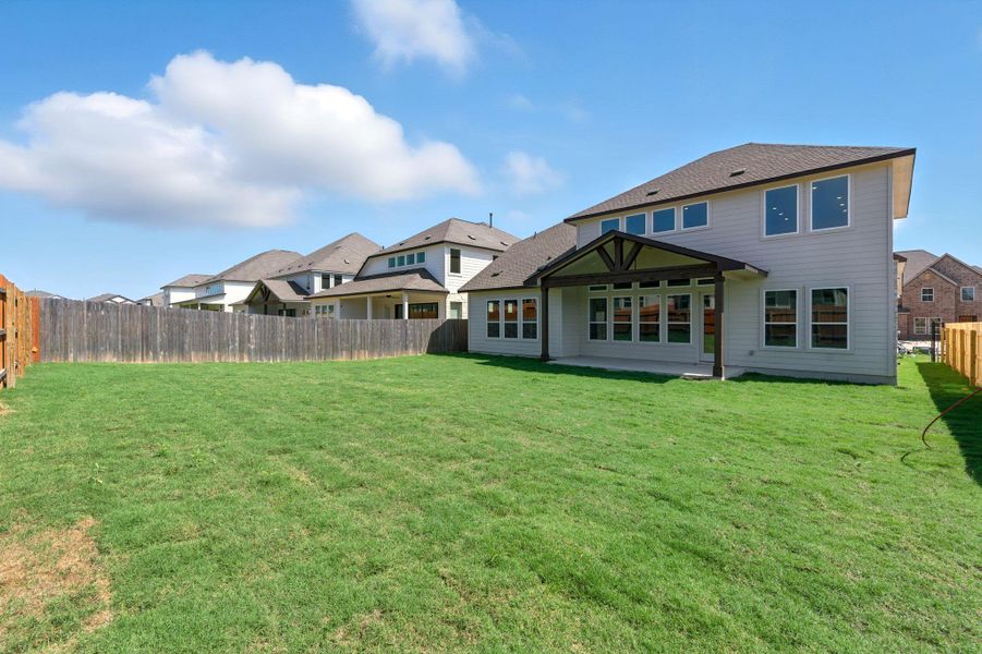 From GFO Home's grand Presidential Series, this stunning 3,417 sf Two-Story new construction home is our striking Harrison Floor Plan offering 5 Bedrooms, 4.5 Bathrooms, and a spacious 2-car Garage. Main Floor Highlights include a Private Study, a Guest Suite with full attached Bathroom, an Open Concept Family Room with soaring 2-story Vaulted Ceilings, and a Gourmet Chef’s Kitchen featuring a large Center Island, Walk-in Pantry, and attached Breakfast Room. Enjoy a spacious Covered Patio leading out to the Private Backyard, as well as a luxurious Primary Suite and Spa-Inspired Primary Bathroom with a Free-Standing Tub, and Oversized Walk-In Closet. Discover additional functionality with a mudroom and laundry room off the garage entrance, and Upstairs you’ll find the Game Room for endless fun, as well as 3 additional Bedrooms and 2 more full Bathrooms. Experience high-end living at its finest with the Harrison floor plan in beautiful & scenic Liberty Hill, TX. Located in Saddleback at Santa Rita Ranch in Liberty Hill ISD, and with a Brand New Amenity Center, The Paddock, now under construction and set to open in late 2026. The Paddock will feature indoor pickleball & badminton, 2 pools, a tot lot, sport courts, playgrounds, and more! Estimated Completion September 2025.