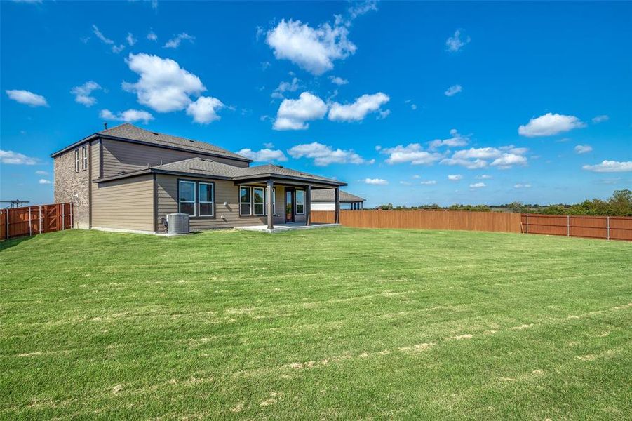 Discover this thoughtfully designed home which showcases a carriage-style garage door. Inside, discover an open floor plan with spacious living room. The kitchen boasts an extended granite countertop, stylish backsplash, stainless steel appliances and gas range. The first-floor primary bath features an extended vanity, chrome fixtures and fiberglass shower with tile surround. Step outside to an extended covered back patio. A full sprinkler system and whole-house gutters keep the yard pristine. Additional highlights include a smart thermostat, Flex Space, game room and ample storage space throughout. Ask sales counselor about closing cost and rate buy down opportunities.