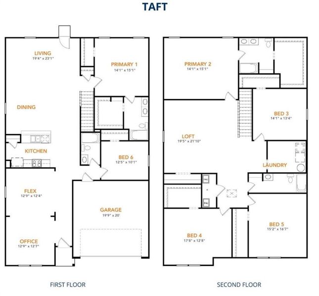MLS# 21179584 - Built by NHC - Ready Now! ~ The Taft Plan from our Liberty Series offers an impressive 6 bedrooms, 4 bathrooms, a 2-car garage, and 4,000 square feet of thoughtfully designed living space. The Taft features two primary suites, each with its own private bathroom—one located on the main level and the other on the upper level, providing ultimate flexibility and privacy. As you enter the Taft, you’ll pass a versatile office and a flexible room that can be customized to fit your needs. Continue into the open-concept living area, where the kitchen with an island overlooks the dining area and spacious family room—creating the perfect space for gatherings and entertaining. The main level also includes a primary suite off the family room, an additional bedroom, and a full bathroom, offering plenty of space for everyone. Upstairs, the second primary suite offers a private retreat, while 3 additional bedrooms, another full bathroom, a laundry room, and a spacious loft complete the upper level.