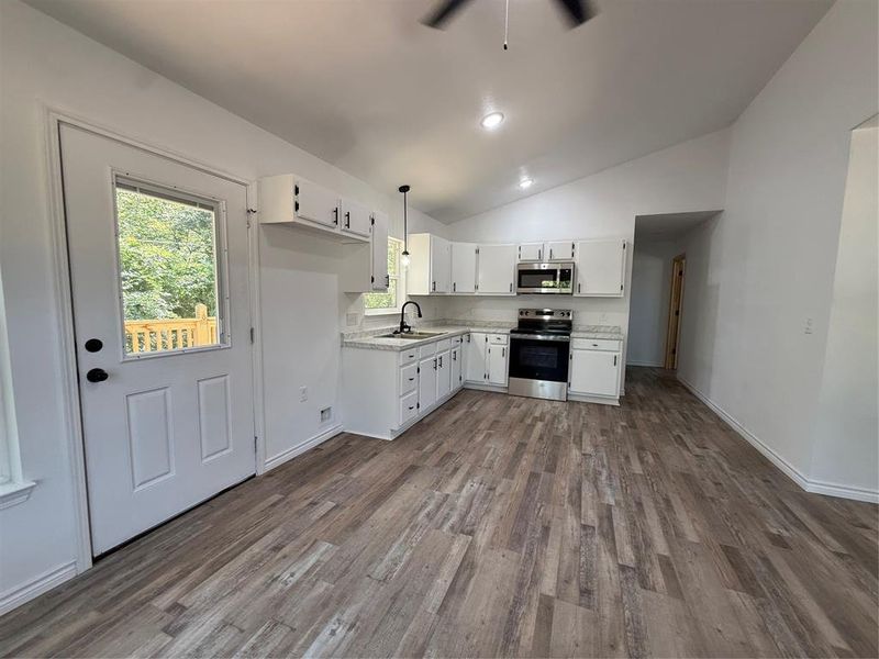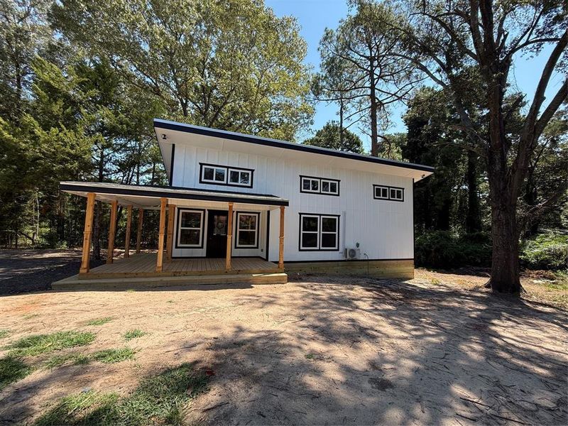 This is an adorable newly constructed home in the Clear Lakes community of Quitman. Located on serene lot with mature trees, the home has a charming lake style esthetic. Large windows across the front give you great views of your porch and nature. The home features 2 primary suites with full bed and bath and a walk in closet. Open concept living room and kitchen have modern decorator touches and hardware. Beautiful vinyl plank flooring and stainless steel appliances add to the appealing amenities. There is a spacious deck out back that is perfect for entertaining. Energy efficient items also include spray foam insulation and mini-splits for heat and air.