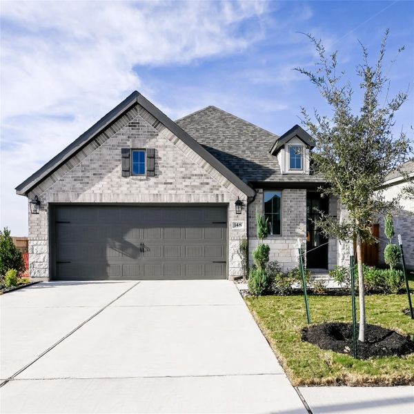 Porch opens to entry with 10-foot ceiling, utility room and mud room. Open family room with three large windows extends to the kitchen and dining area. Island kitchen offers built-in seating space and corner walk-in pantry. Secluded primary suite features large bedroom, dual vanities, glass enclosed shower and a walk-in closet. Secondary bedrooms with walk-in closets, additional bathrooms and two linen closets complete this design. Covered backyard patio. Two-car garage.