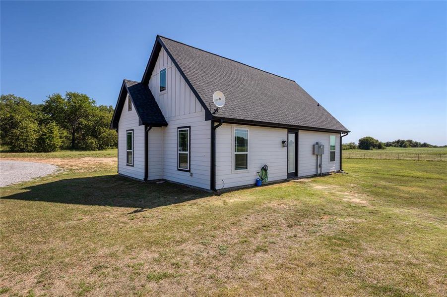 More than a home—this is a lifestyle. Enjoy 12 acres of country living complete with a separate guest space, storm shelter, and plenty of room for livestock. Experience the perfect blend of luxury and country living in this beautifully designed custom home set on 12 acres with stunning views and plenty of room to roam. Step inside the open-concept floor plan where soaring vaulted ceilings with exposed wooden beams create a warm yet spacious atmosphere. The gourmet kitchen is a true showstopper, featuring a massive island, sleek countertops, high-end appliances, and an oversized walk-in pantry that every home chef will love. The inviting living area, anchored by a wood-burning stone fireplace, flows seamlessly into the dining and kitchen space, making it ideal for family living or entertaining. The private primary suite is a true retreat with a tray ceiling, spa-like ensuite bath with dual vanities, a freestanding soaking tub, an expansive walk-in shower, and a large walk-in closet. Two additional generously sized bedrooms and a stylish full bath complete the main living quarters. A separate second living space provides endless possibilities—complete with its own kitchen, HVAC, and garage space, it’s perfect for multi-generational living, guests, or even a private office. Outside, you’ll find a storm shelter, circular driveway, and plenty of space for livestock, gardening, or simply enjoying wide-open skies. This property offers peace and privacy while still being within reach of town conveniences. With sweeping views and thoughtful features inside and out, this is more than a home—it’s a lifestyle.