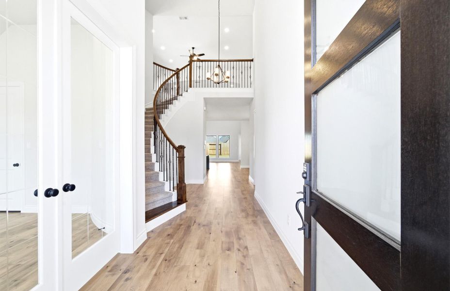 2-story home features an extended entry with 21’ ceilings that leads you into a study, the open concept kitchen, dining, and family rooms that is flooded with natural light from floor to ceiling windows in the family room. The centrally located kitchen features 42” cabinets and an oversized island with high-bar seating. A large staircase leads you to an expansive game room as well as 3 bedrooms and 2 full baths. The master bath includes a freestanding tub, separate shower, His and Hers vanities, and an oversized closet. Home is complete with a 2½ car garage.