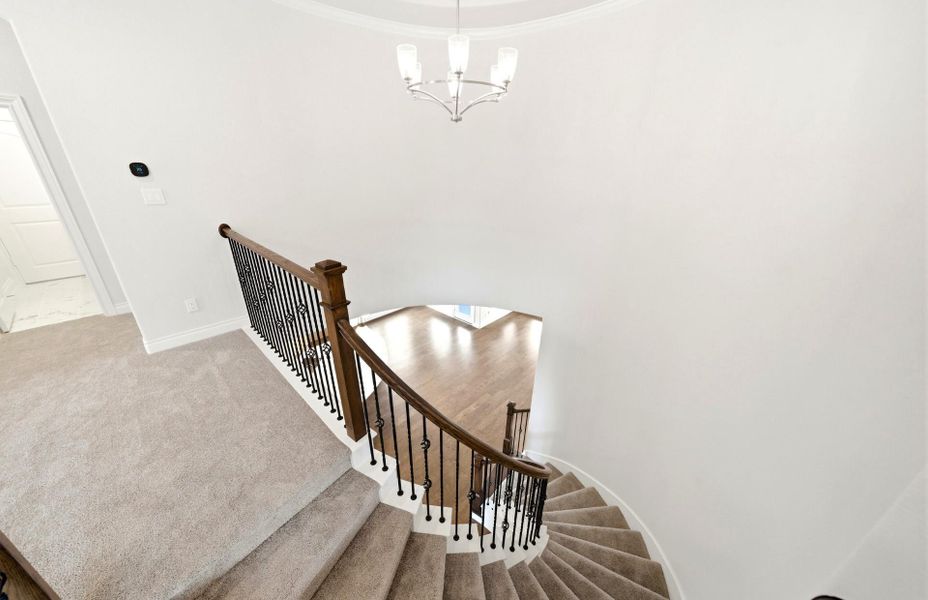 2-story floor plan features large entry with 21' ceilings that leads you to the statement staircase. The open concept layout connects the kitchen, large family room, and casual dining area. The kitchen features 42" cabinets, an oversized island, KitchenAid appliances including a 36” stainless steel cooktop. The centrally located family room displays 13' ceilings, a corner fireplace, and full wall of windows. The master bath includes a freestanding tub, separate shower, His and Hers vanities, and separate closets. Upstairs features a large 20'x14' game room, 2 bedrooms, and a full bath. Home is complete with an oversized 24' wide patio.