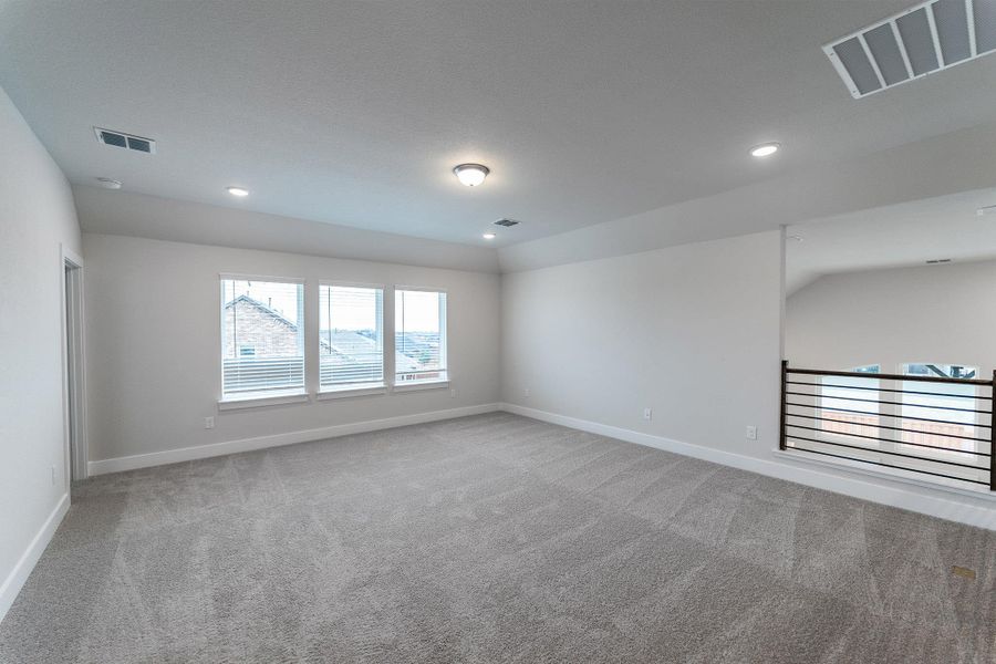 Anything but understated! The pleasant Snowmass floor plan includes custom elements that will satisfy every member of your family. Entering this home, you are first met with your private study room that accommodates you when working from home or the kids while they finish their homework. In need of more bedrooms for family or guests? Transform the study room into a guest bedroom with an attached fourth bathroom replacing your powder bathroom. Across from the study is the entrance to your two-car garage. If a sizable garage is on your wishlist, you will love having the option of swapping your two-car garage for a two-and-a-half or three-car garage! Down the foyer is your convenient downstairs powder bathroom, along with your huge walk-in utility room. At the end of the foyer, your spacious kitchen area resides complete with granite countertops, an oversized pantry, industry-leading appliances, and a kitchen island! The open concept layout of the Snowmass plan makes this the ideal home for spending quality time together and entertaining. Adjoined with the kitchen is the massive family room with the combined dining area that gives you access to an optional covered patio right in your backyard. Completing the downstairs is the master bedroom which features three separate windows for plenty of natural light. Also, your master bath contains cultured marble countertops with dual vanities, a large walk-in closet, a bathtub, and a stand-alone shower that you can upgrade into a super shower if you would like. Up the stairs, you will come across a large gameroom, as well as a media room that is perfect for family movie nights or watching the big game. Additionally, you will find the three remaining bedrooms with two of the bedrooms containing walk-in closets, and two more full bathrooms. If you would prefer to have another bedroom, you are able to switch out the media room for an additional bedroom. Rest assured, you'll love everything about the Snowmass plan!