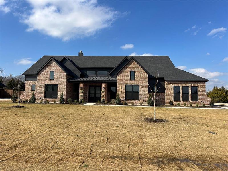 Stunning single-story custom home on 1+ acre in Oak Creek Ranch! This beautifully designed 4BR, 3.5BA home features 3,250 SF of luxurious living space plus bonus game room and study. Soaring 18' vaulted ceilings in the great room create dramatic elegance, while dual fireplaces provide cozy ambiance. Gourmet kitchen flows seamlessly to dining and living areas - perfect for entertaining. Spacious primary suite boasts vaulted ceilings, walk-in closet, and spa-like bath with vessel tub. Additional bedrooms feature vaulted ceilings for added grandeur. Covered porches front and back extend outdoor living. Three-car garage provides ample storage. Premium finishes throughout include foam insulation, composite shingles, brick and fiber cement exterior. Located in desirable Midlothian with easy access to DFW metroplex.