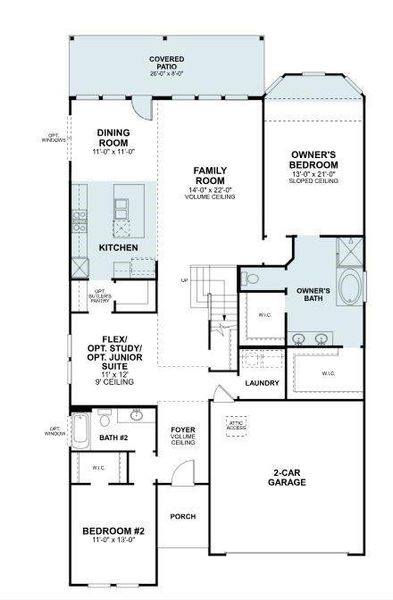 A flex room near the front of the home adds versatility and can be used as a home office, study, or sitting room. A first-floor secondary bedroom and full bath provide added convenience for guests.