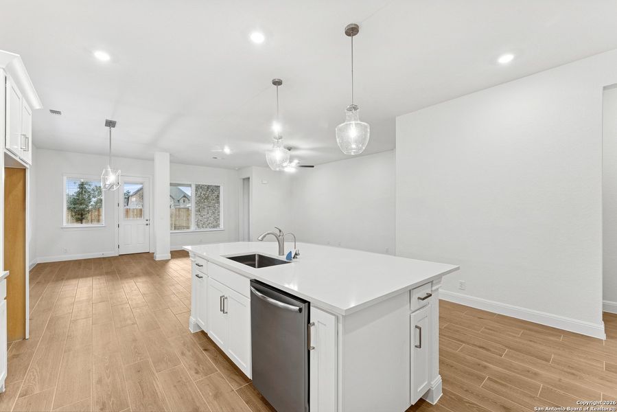 Explore the wealth of comfort and versatility built into every detail of The Kepley floor plan by David Weekley Homes. The cheerful front study provides a welcoming opportunity to craft your ideal parlor, lounge, or office. Prepare, present and enjoy your culinary masterpieces on the galley island in the streamlined kitchen. Conversations with loved ones and quiet evenings to yourself are equally scenic from the airy shade of your covered porch. Gather in the open dining and living areas for delightful meals and memorable evenings together. Individual styles and growing personalities have plenty of space to thrive in the superb spare bedrooms. The sunlit retreat is the perfect spot for a family movie theater or a fun zone for the kids. End each day in the refined luxury of your Owner's Retreat, which includes a spa-day bathroom and a deluxe walk-in closet. Ask our Internet Advisor about the built-in conveniences of this new home in the San Antonio, Texas, community of Davis Ranch.