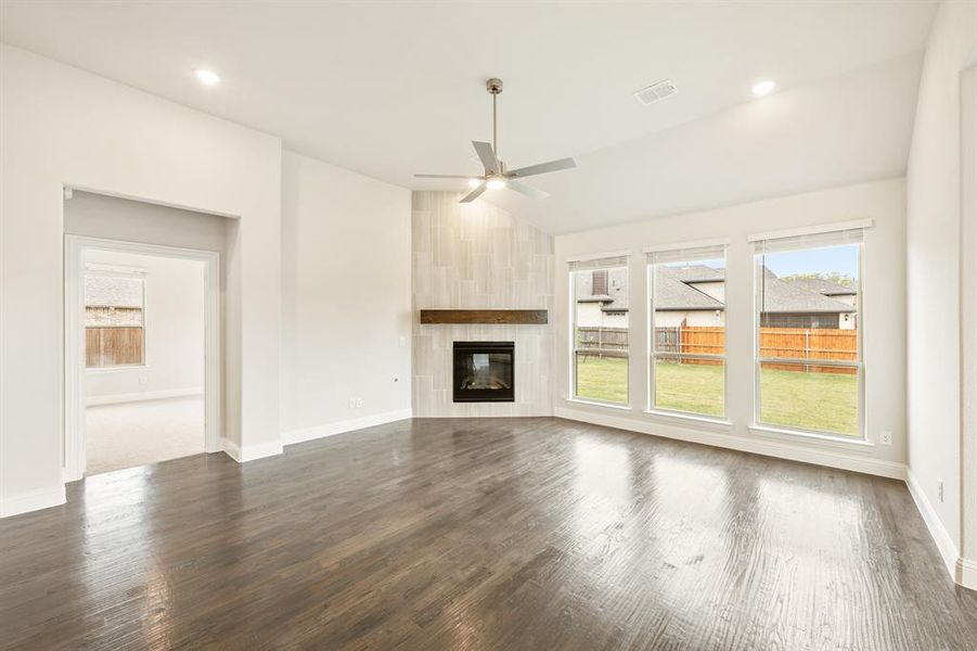 NEW! NEVER LIVED IN. COMMUNITY CLOSEOUT! Ready Now! This Magnolia II by Bloomfield Homes sits proudly on an oversized corner lot and boasts exceptional curb appeal with custom landscape and a side-entry 3-car garage with cedar doors. Enter onto rich hand-scraped hardwood flooring that flows throughout the first-floor common areas. A convenient study with glass French doors is just off the entry, and is perfect for working from home. The open-concept family room features a direct-vent, gas fireplace, and easy access to the covered patio. The gourmet kitchen blends style and function with quartz countertops, a marble mosaic backsplash, and custom cabinetry with pot-and-pan drawers, a custom wood hood, and under-cabinet lighting. Professional Series appliance package includes double ovens, a 5-burner gas cooktop, and an ultra-quiet dishwasher. The upstairs game room opens to a spacious balcony and a media room for family movie nights. 2 additional bedrooms and 2 full baths complete the second floor. Additional features include full sod and sprinklers, full gutters, garage door openers, a gas stub on patio, ceiling fans, and luxurious finishes throughout. Don’t miss your chance to own this beautiful new home and begin living the life you deserve!