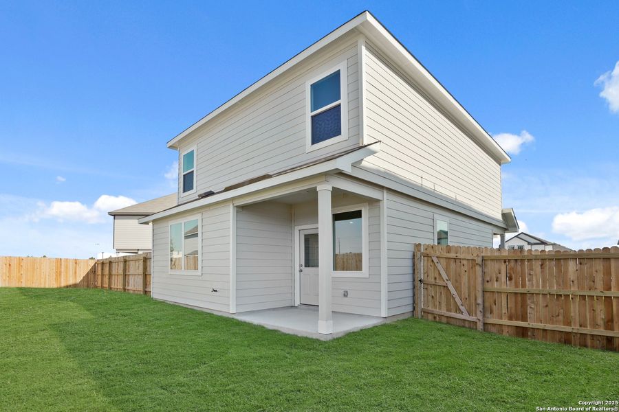 Love where you live in Melissa Ranch in San Antonio, TX! The Rockhampton floor plan is a spacious 2-story home with 3 bedrooms, 2.5 baths, and 2-car garage. The first floor offers the perfect space for entertaining with vinyl plank flooring and a large kitchen island open to both the living and dining areas! The gourmet kitchen is sure to please with 42" cabinetry, granite countertops, and stainless-steel appliances! Upstairs offers a split floor plan and private retreat for all bedrooms! Retreat to the Owner's Suite featuring double sinks with granite countertops, a sizable shower, and a walk-in closet. Enjoy the great outdoors with a sprinkler system and a covered patio! Don't miss your opportunity to call Melissa Ranch home, schedule a visit today!