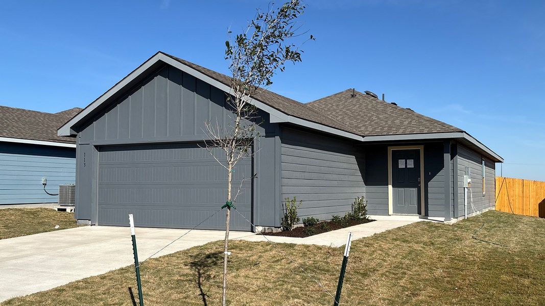 Discover the Barton – a thoughtfully designed one-story floorplan in The Villages at Schwertner Ranch community in Jarrell, TX. This inviting 3-bedroom, 2-bathroom home offers approximately 1,280 sq. ft. of comfortable living space with an open-concept layout that’s perfect for both everyday living and entertaining. From the moment you step inside, you’ll appreciate the welcoming ambiance and stylish features throughout. The heart of the home is the spacious kitchen, showcasing a large island, sleek stainless steel appliance, and plenty of room to gather. Just off the kitchen are two secondary bedroom and a full secondary bath.