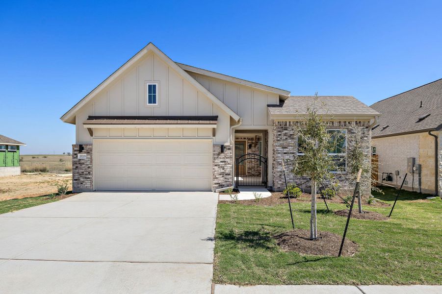 Over $30,000 in design options in this home! Gorgeous open concept 1 story home with 4 bedrooms, private study and 3.5 baths, 2509 sf. This beautiful floorplan has high ceilings and a beautiful courtyard off the front leading to the private casita. This home is on a greenbelt homesite. Large covered back porch in addition to the front courtyard. High ceilings throughout, the kitchen has a center island, built in appliances, Kent Moore soft close doors and drawers, cabinets to the ceiling with beautiful design selections and additional cabinetry in the utility room for additional kitchen storage. Luxurious primary bath with stand alone tub, walk in shower with mud set floor and seat. All Capitol Community homes include spray foam insulation that will help save tremendously on your electric bill, tankless hot water heaters, electric car chargers, 4 sides brick, garage door openers and gutters on the front and rear. This home has all the extras; a wood burning fireplace in the family room, upgraded carpet and pad/real hardwood flooring throughout main areas/ 6 inch baseboards/ 8' interior doors with all matte black hardware.