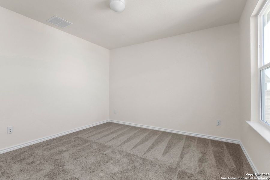 Step inside this inviting home featuring 9-ft. first floor ceilings and stylish decorative touches throughout. The kitchen shines with Whirlpool stainless steel appliances, granite countertops in Uba Tuba, a spacious extended breakfast bar, and elegant Woodmont Belmont 42-in. upper cabinets. The primary bath offers a relaxing 42-in. garden tub/shower with Daltile tile surround and upgraded cabinetry. Enjoy the charm of a Carrara-style entry door, Kwikset Polo knob hardware, and durable Rekindle ceramic tile flooring in the kitchen, living room, and baths. Additional highlights include a wireless security system, an automatic sprinkler system, and a fully sodded yard.