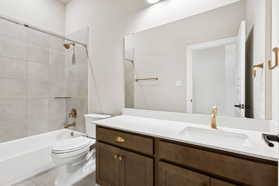 Unleash your creativity in the versatile study, where you can design your dream home office or family movie theater. Each secondary bedroom is thoughtfully crafted to support growth and individuality, offering unique features and ample space to flourish. The Owner's Retreat is a sanctuary, featuring an en suite bathroom, large walk-in closet, jetted garden tub, and separate shower for a daily retreat.