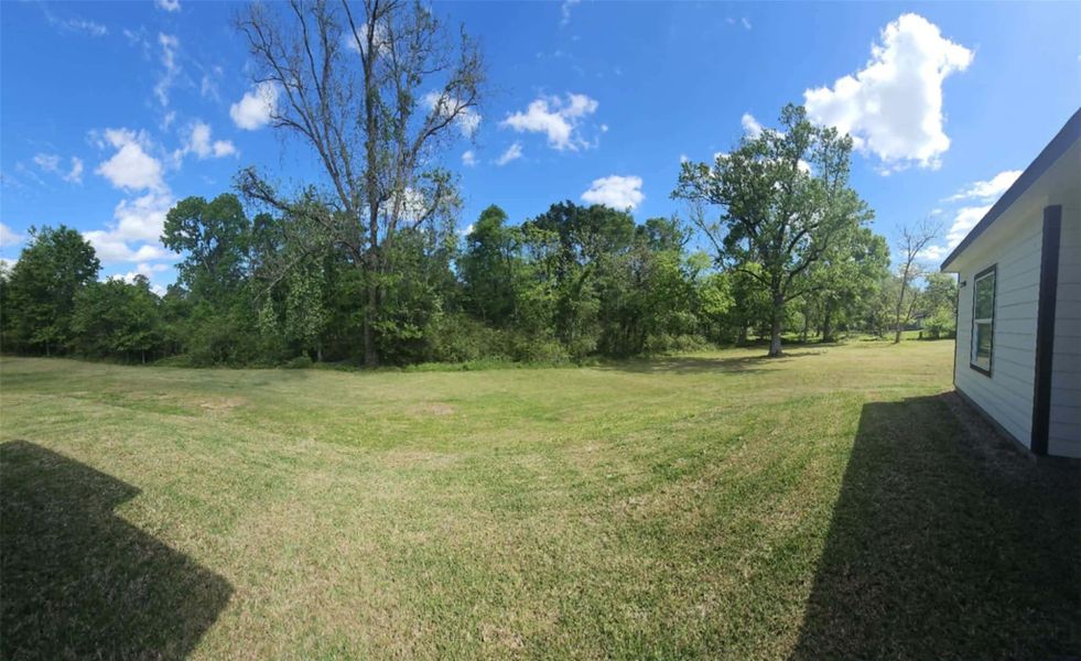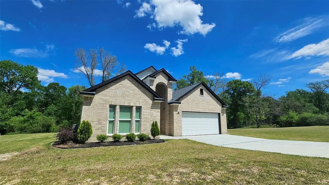 Texas country living at its finest! This new home is waiting for you. Out of the flood zone with a 1.343 acre lot. Laminated wood title to bring the warm, natural aesthetic of hardwood and providing the extreme durability and low maintenance. Engineered Quartz in kitchen and all baths to low maintenance and durability. Great style to bring luxury and nature together. Huge main walking closet. No back neighbors. Garage has two doors, one to access the kitchen and another to the entrance hall. Long driveway and covered patio. Huge clear lot to many opportunities or ideas as a New Home Owner.