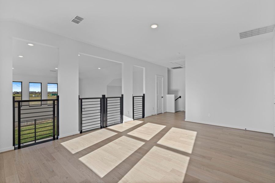 The open-concept living and dining areas are enhanced by soaring 22-ft ceilings, creating a bright, airy, and inviting atmosphere. Situated on a highly desirable corner homesite, this home delivers luxury, modern design, and comfort—truly a rare opportunity in Harvest Green.