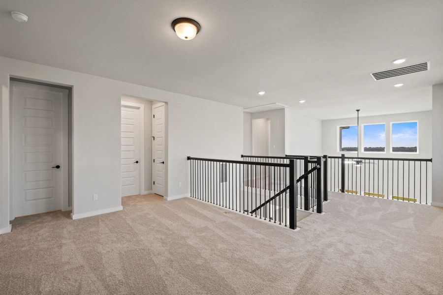 A home for growing - The primary suite and secondary bedrooms are located upstairs with a sizeable loft that acts as a privacy buffer between the rooms. The downstairs was designed with versatility in mind. The open-concept great room, professional grade kitchen and covered patio are a roomy and comfy setting for quality time, while the flex space is anything you need it to be. The flex space has been converted into a downstairs fourth bedroom with an ensuite bath in place of the powder room. Home Highlights: Upgraded Gourmet Kitchen Bed 4 and Bath 3 ILO Flex Space 8 foot doors throughout Open Space to Rear