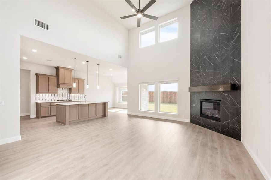 3% towards financing with any lender. NEW! NEVER LIVED IN – Ready for Closing! The Bellflower II by Bloomfield Homes is a stylish 4 bedroom, 3.5 bathroom home with a 2-car garage that makes a strong first impression with its bold 8' custom front door, front uplights, and gutters. Inside, enjoy soaring vaulted ceilings, laminate wood floors in main areas, and quartz countertops throughout. The deluxe kitchen shines with a custom backsplash, under-cabinet lighting, glass door pantry, and three pendant lights over the large island. The tile-to-ceiling fireplace with box mantel adds warmth to the open family room, highlighted by vertical stair railing above. Just off the foyer, you’ll find a private study and a flexible dining room that can also serve as a media space, while a secondary bedroom with a full bath nearby provides convenience for guests. The main-level primary suite offers a quiet retreat with direct access to the family room and a spa-like bathroom. Upstairs, the open game room overlooks the family room below and connects to 3 additional bedrooms, 2 full baths, and a dedicated media room—ideal for entertaining. Thoughtful touches like window coverings, blinds, a mud room, and a covered patio with a gas stub for grilling make this home as functional as it is beautiful. Call or visit Bloomfield Homes at Ridge Ranch in Mesquite today to learn more about making this home yours!