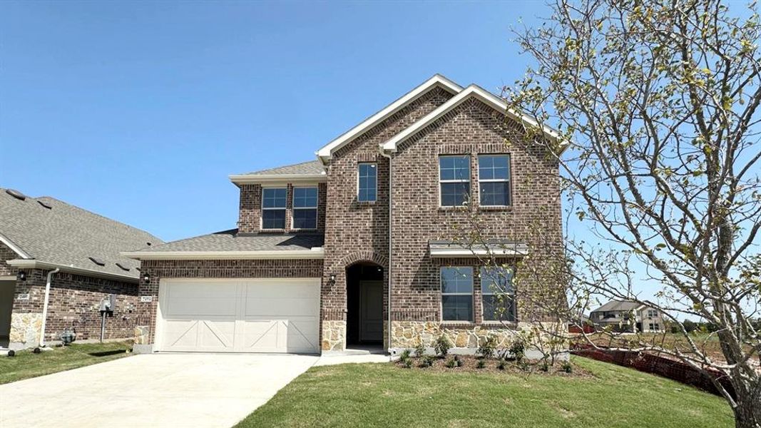 2 Story Open to below, 11' island in Kitchen, 4 bedroom, primary plus 1 other bedroom down, 3 bath and game room, large covered patio and stainless steel appliances. Lilybrooke at Legacy Hills in Celina, TX. Embrace comfortable living tailored to meet your family's needs and style. Our homes are crafted with an open layout offering a seamless flow between the living, dining and kitchen areas-perfect for entertaining and family gatherings.