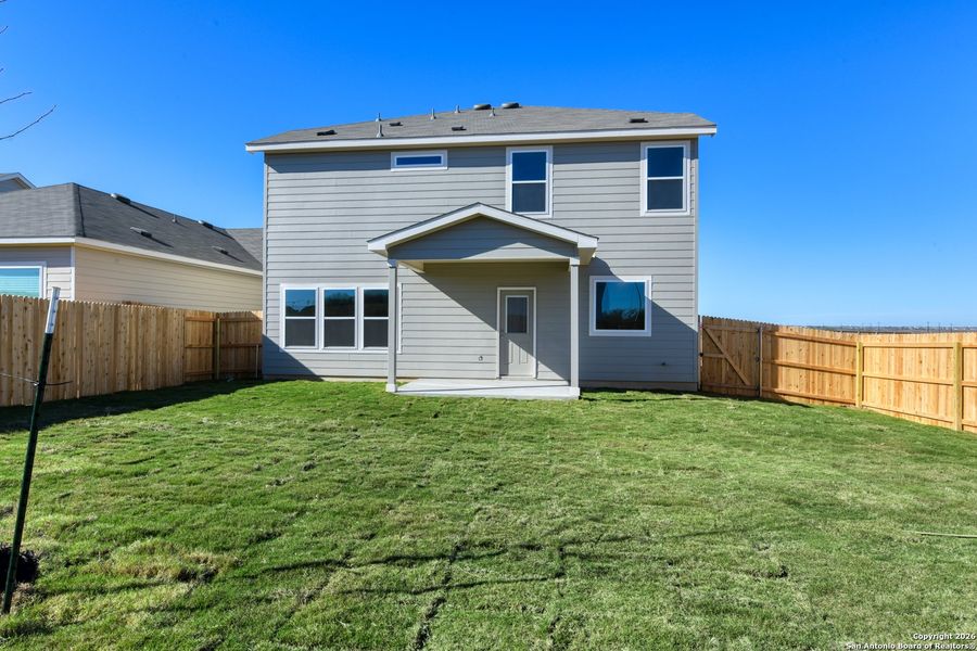 This thoughtfully designed two-story home effortlessly blends modern style with everyday functionality, creating a space that feels both elegant and inviting from the moment you enter. Every detail has been carefully planned to support a lifestyle that balances comfort, connection, and convenience. At the heart of the home, the gourmet kitchen serves as a hub for family life and entertaining. Featuring a spacious center island, built-in appliances, and a walk-in pantry, the kitchen provides the perfect setting for meal prep, casual dining, or hosting gatherings. It flows seamlessly into the family room, where expansive windows fill the space with natural light and frame serene views of the backyard, creating a bright and welcoming environment for both quiet evenings and lively celebrations. A private bedroom and full bath on the first floor offer a comfortable retreat for guests, providing privacy and convenience. Upstairs, the primary suite is designed as a personal sanctuary, featuring a spa-inspired bath with an oversized shower, double vanities, and a generous walk-in closet. Three additional bedrooms and a loft provide plenty of space for a growing family, hobbies, or study areas, ensuring everyone has room to relax and thrive. With its thoughtful layout, modern finishes, and adaptable spaces, this home is designed to grow with you while providing a warm and inviting atmosphere. From quiet mornings to lively gatherings, every corner of this home is built to support everyday living while offering the comfort, style, and functionality your family deserves. This home is part of our Milan Collection-effortlessly chic with a modern European edge. Cool grays, smooth ceramics, and bold decorative accents create a gallery-like feel for artful living. It's sleek yet warm, refined yet welcoming, and always ready for quiet evenings or vibrant gatherings. Milan is where contemporary design meets everyday comfort in perfect harmony. This home is located in The Wilder, a community perfectly positioned with direct access to Loop 1604 and minutes from I-10. Enjoy easy commutes to major employers like Randolph Air Force Base, Amazon, and Brooke Army Medical Center. Planned amenities include a refreshing pool, playground, and cabana-ideal spots to relax and connect. The Wilder offers the perfect blend of convenience, lifestyle, and modern living.