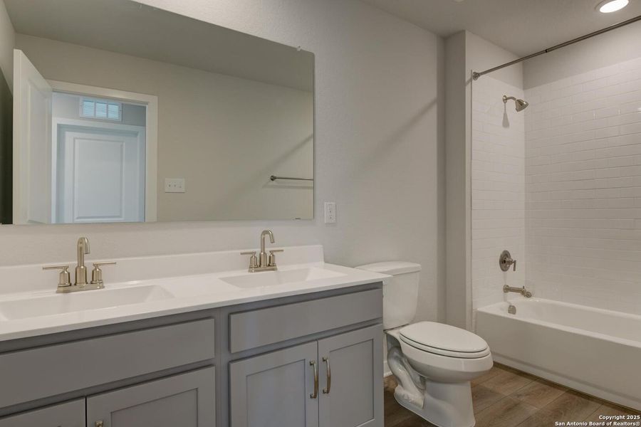 This thoughtfully designed two-story home seamlessly blends modern style with everyday functionality, creating a space that is both elegant and inviting from the moment you step inside. Every detail has been carefully considered to support a lifestyle that balances comfort, connection, and convenience. At the heart of the home, the gourmet kitchen serves as a central gathering space, perfect for both daily meals and special occasions. The spacious center island offers ample room for meal prep while also creating a natural spot for family and friends to come together. Its open layout flows effortlessly into the living areas, ensuring everyone can stay connected whether you're cooking, relaxing, or entertaining. A flex space at the front of the home offers a great space for working from home or enjoying hobbies. A secondary bedroom on the first floor, complete with a full bath, offers a private space for guests or can be repurposed as a home office, playroom, or creative retreat. This flexibility allows the home to adapt to a variety of lifestyles and needs. Upstairs, the primary suite is designed as a personal sanctuary, providing privacy and comfort. The spa-inspired bath features an oversized shower, double vanities, and a generous walk-in closet, creating a perfect retreat at the end of the day. Three additional secondary bedrooms and a loft provide even more space for family, hobbies, or quiet retreats, ensuring everyone in the home has room to live, work, and play. With its thoughtful layout, modern finishes, and adaptable spaces, this home offers the perfect balance of style and practicality. It's designed not just for living, but for creating lasting memories in a space that feels like home from the very first step inside. This home is part of our Milan Collection-effortlessly chic with a modern European edge. Cool grays, smooth ceramics, and bold decorative accents create a gallery-like feel for artful living. It's sleek yet warm, refined yet welcoming, and always ready for quiet evenings or vibrant gatherings. Milan is where contemporary design meets everyday comfort in perfect harmony. This home is located in The Wilder, a community perfectly positioned with direct access to Loop 1604 and minutes from I-10. Enjoy easy commutes to major employers like Randolph Air Force Base, Amazon, and Brooke Army Medical Center. Planned amenities include a refreshing pool, playground, and cabana-ideal spots to relax and connect. The Wilder offers the perfect blend of convenience, lifestyle, and modern living.