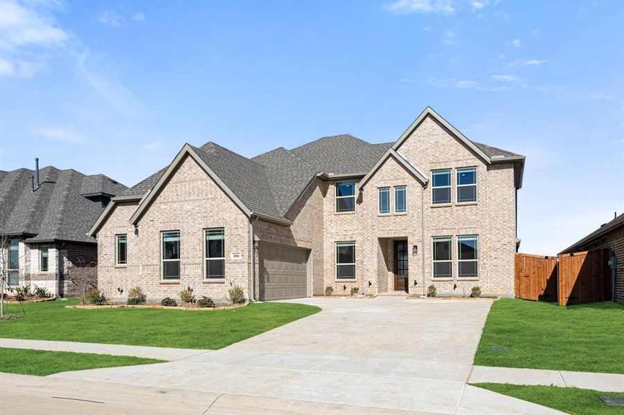 NEW! NEVER LIVED IN. Ready to Close! This beautiful 5 bedroom, 4 bathroom home with a 2-car garage by Bloomfield Homes blends luxury and functionality in the sought-after Seaberry II floor plan—set on a spacious lot in Timberbrook. From the moment you arrive, the brick exterior, 8' front door, and covered porch with gutters and lighting create incredible curb appeal. Step inside to soaring vaulted ceilings, rich finished wood flooring, and expansive windows that fill the home with natural light. At the heart of the home, the tile-to-ceiling fireplace with a gas starter and cedar mantel creates a warm and stylish focal point in the open family room. The deluxe kitchen is built for serious cooking and entertaining, with double ovens, a 5-burner cooktop, custom cabinetry, and a large center island. Enjoy the convenience of 8' interior doors, window coverings, and flexible living spaces—including a first-floor media room and an upstairs game room with open railing overlooking the living space below. The private primary suite offers a spa-like escape, and the covered patio with a gas stub makes outdoor living easy year-round. With timeless finishes and thoughtful upgrades throughout, the Seaberry II by Bloomfield Homes delivers luxury living inside and out. Tour this home in Justin today!