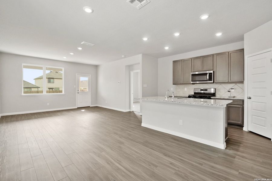 Love where you live in Hickory Ridge in Elmendorf, TX! The Lakeland floor plan is an open concept 2-story home, with soaring ceilings in the entry, and features 3 bedrooms, 2.5 bathrooms, and a 2-car garage. This home has it all, including vinyl plank flooring throughout the common areas! The gourmet kitchen is sure to please with 42" gray cabinets, granite countertops, and stainless-steel appliances! Retreat to the first-floor Owner's Suite featuring granite countertops, a sizable shower and a walk-in closet. Secondary bedrooms have walk-in closets, too! Enjoy the great outdoors with a sprinkler system and a covered patio! Don't miss your opportunity to call Hickory Ridge home, schedule a visit today!