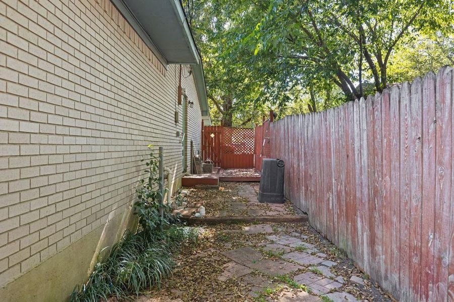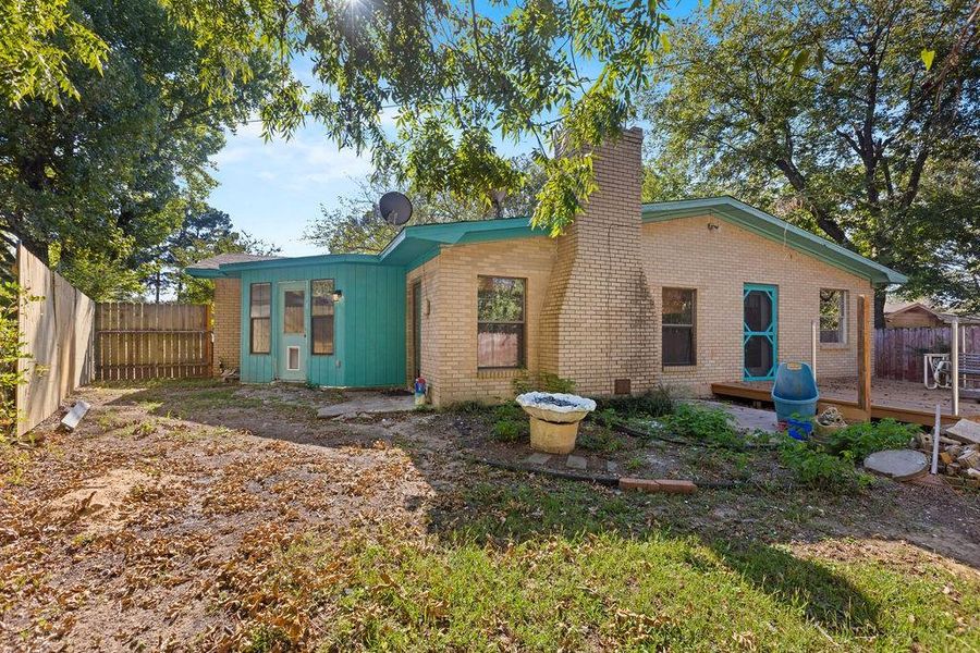 The cozy fireplace can be enjoyed as a traditional wood-burning hearth or easily converted for gas use. A storage building in the backyard is perfect for housing lawncare tools and outdoor essentials. While the backyard once served as a beautiful retreat, a little care and creativity could transform it again into a private oasis.