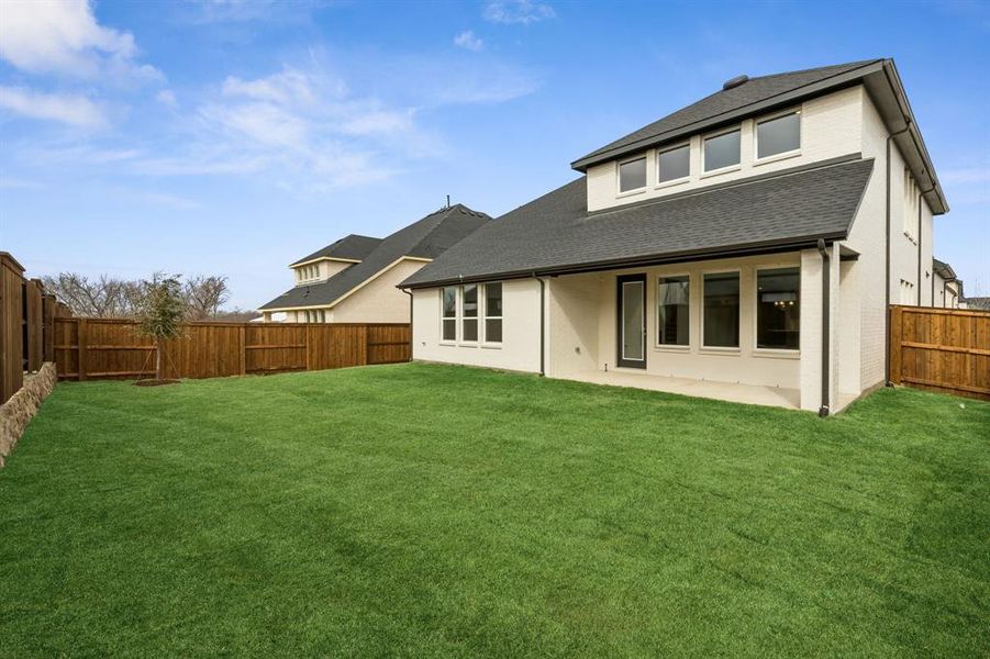 NORMANDY HOMES VERSAILLES II floor plan. Welcome to this stunning four-bedroom, four-and-a-half bath home that beautifully combines elegance and comfort. Step inside to soaring open-to-above ceilings in the family room, complemented by luxury vinyl plank flooring that flows seamlessly through the common areas. A striking wood staircase with open railing leads to the game room, adding both charm and style. The owner’s suite is a private retreat, featuring a spa-like bath with a freestanding tub and dual walk-in closets. A second bedroom with a full bath is conveniently located downstairs, perfect for guests. Dedicated spaces for work and leisure include a private study, media room, and spacious game room. Thoughtful, custom finishes enhance every corner of the home, while the inviting patio extends your living space outdoors. With extra storage in the garage, this home is as functional as it is beautiful. Make it yours today! MOVE IN READY NOW!